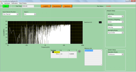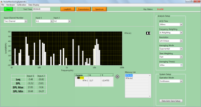 系统由Leq&SPL (等效噪声级和声压级测量),Transmission(透射量测试)及Spectrum(频谱分析)和 回显 四部分组成