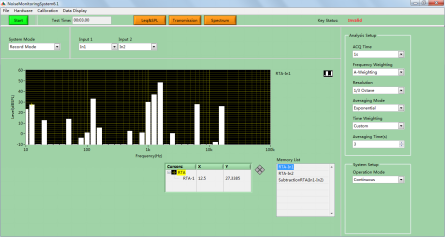 本系统包括测试软件(含PC)、专业采集卡、话放、测量传声器与校准器!一般现场测试多使用声级计,实验室使用频谱分析仪组成的测试系统。声级计功能一般比较简单,大部分声级计只能测A、C、Z声级,即使可以测频谱,最细也只能测1/3oct,而且声级计精度也较差,受干扰因素较多。本公司研发的噪声测试系统,可以进行实时频谱分析,最细可以测到1/24倍频程,而且有内置信号发生器,可以发粉红噪声、白噪声、正弦波等,精度可以达到1型,可达到4个通道的输入。最重要的是,我们系统的核心技术全部有本公司研发,价格优势明显,性价比高。