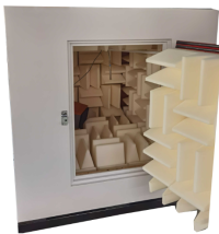 为研究不同混响时间下,电声元器件的不同或听感的差异,可以选择混响可调的隔声箱。这样能保证在一个低噪声(25dBA),0.2~0.5s的混响时间的环境下进行声学研究。