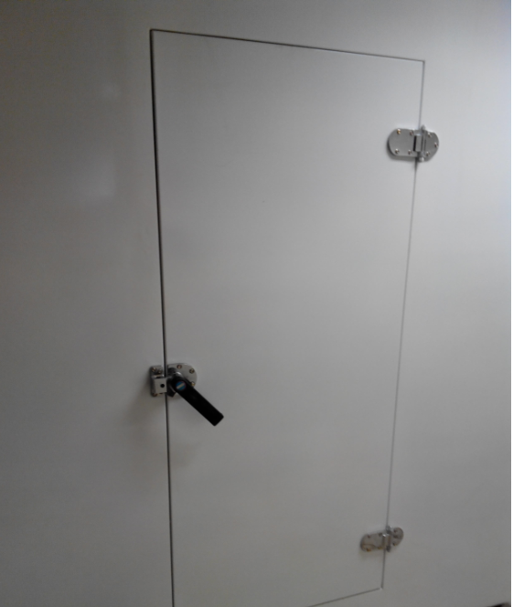 该混响箱为专门定制,客户可以对材料进行吸声测试使用。箱体外形尺寸为2200mm×1800mm×2000mm的长方体,内部尺寸约为1850mm×1450mm×1650mm。底部安装隔振器;整体钢板复合结构,箱体内部安装钢板扩散体。背面留“S”弯20mm粗穿线孔,并预埋电缆,方便使用。